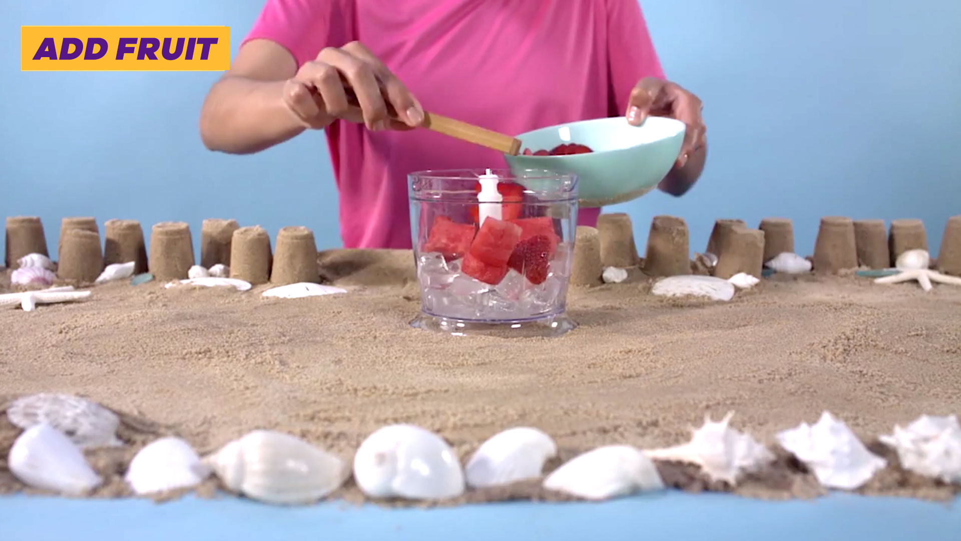 Step 3: Blend fruit and ice.